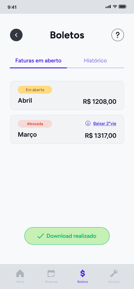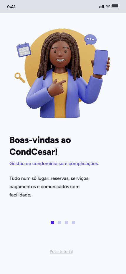Este projeto foi criado para resolver a descentralização dos serviços de condomínio por meio de um aplicativo dedicado. O desafio foi projetar um protótipo de alta fidelidade que simplificasse tarefas complexas para os residentes, como gerenciar reservas, acessar contas e controlar o acesso, garantindo uma experiência do usuário suave e consistente.