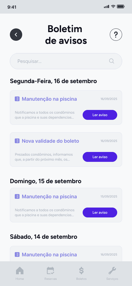 Um aplicativo móvel para gerenciar atividades de condomínio desenvolvido para o curso de prototipagem e teste de usuário na faculdade